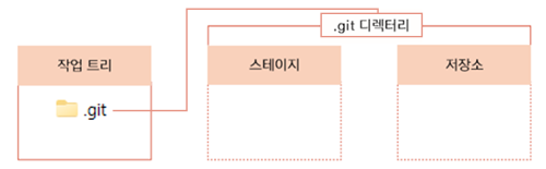 초기화하면 작업트리안에 .git 숨김 디렉토리가 생성되며 .git안에 눈에 보이지않는 숨은파일로 스테이지(.git/index)와 저장소(.git/HEAD) 존재