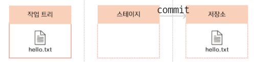 3. $ git commit -m '메세지' 버전을 생성해 스테이지에서 저장소로 보냄